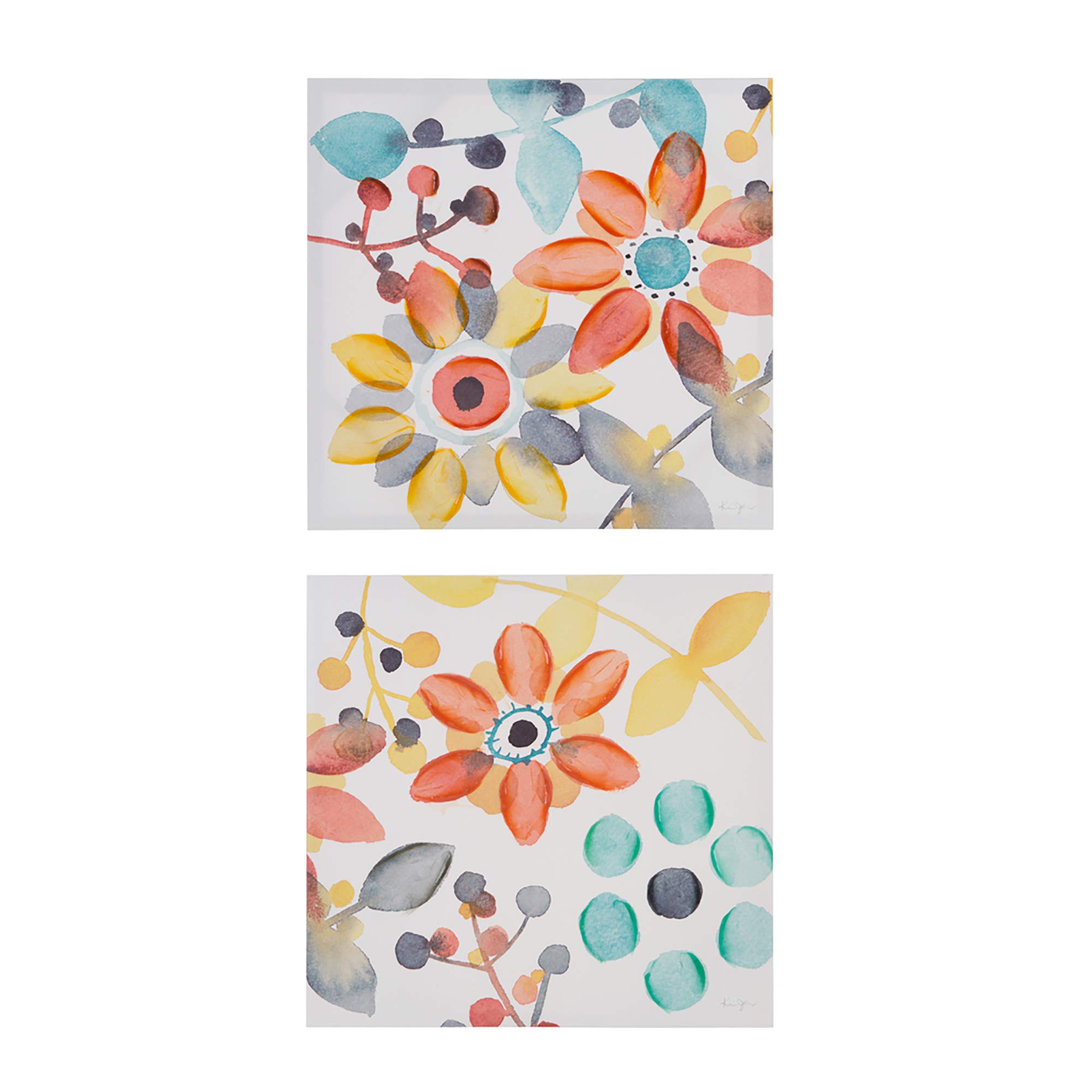 Intelligent Design, Sweet Florals 2 Piece Set Wall Art - Hand Embellished Canvas, Modern Contemporary Design Global Inspired Flower Abstract Painting Living Room Accent Décor, Orange Multi, 20 x 20