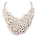 JANE STONE White Beaded Cluster Bib Necklace Fashion Statement Chunky Jewelry(Fn1042)
