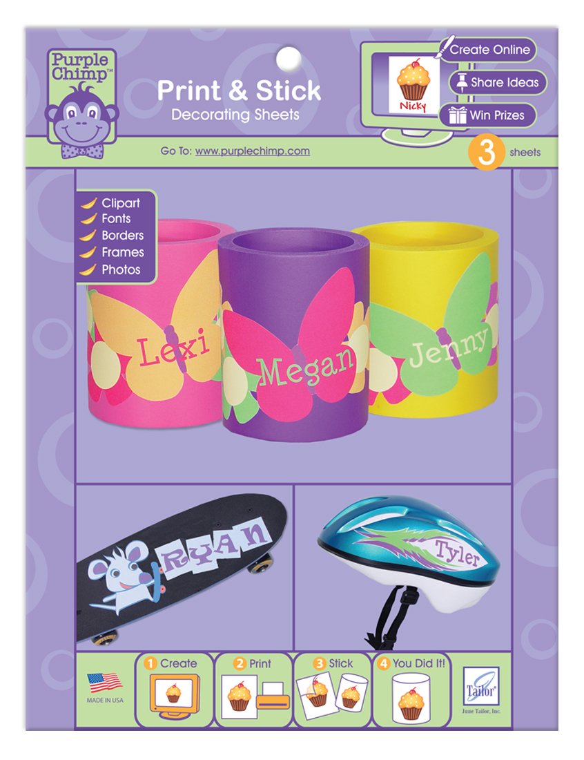 June Tailor Purple Chimp Print & Stick Decorating Sheets (3 Pack)