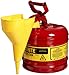 Justrite 7120110 2 Gallon, 9.50" OD x 13.75" H Galvanized Steel Type I Red Safety Can With Funnel