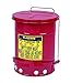 Justrite 09300; Galvanized-Steel; Safety cans; for Oily Waste; Red; Foot Operated Cover; Raised, Ventilated Bottom; Reinforced Ribs; Self-Closing; UL Listed; FM Approved; Capacity: 10 gal. (38L)