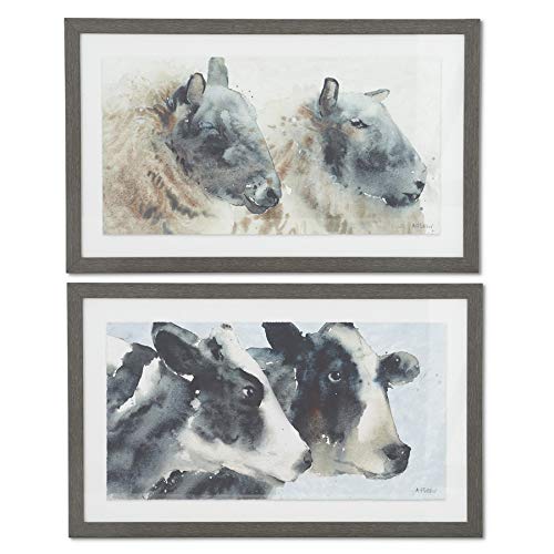 K&K Interiors 16023A Dark Wood Framed Watercolor Prints with Assorted Animal Motifs (2 Styles)