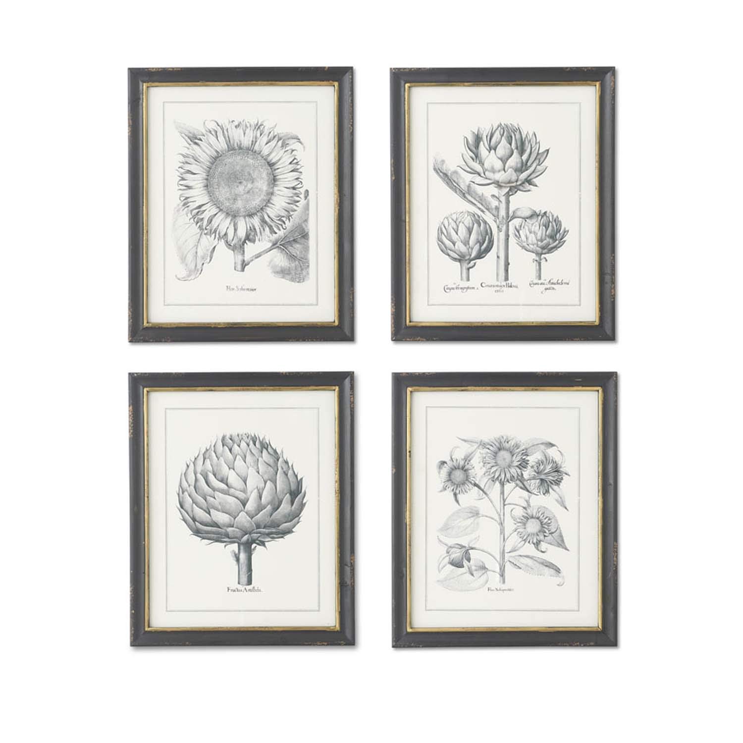 K&K Interiors 15152A Assorted 22 Inch Sunflower and Artichoke Prints in Black Frames (4 STYL