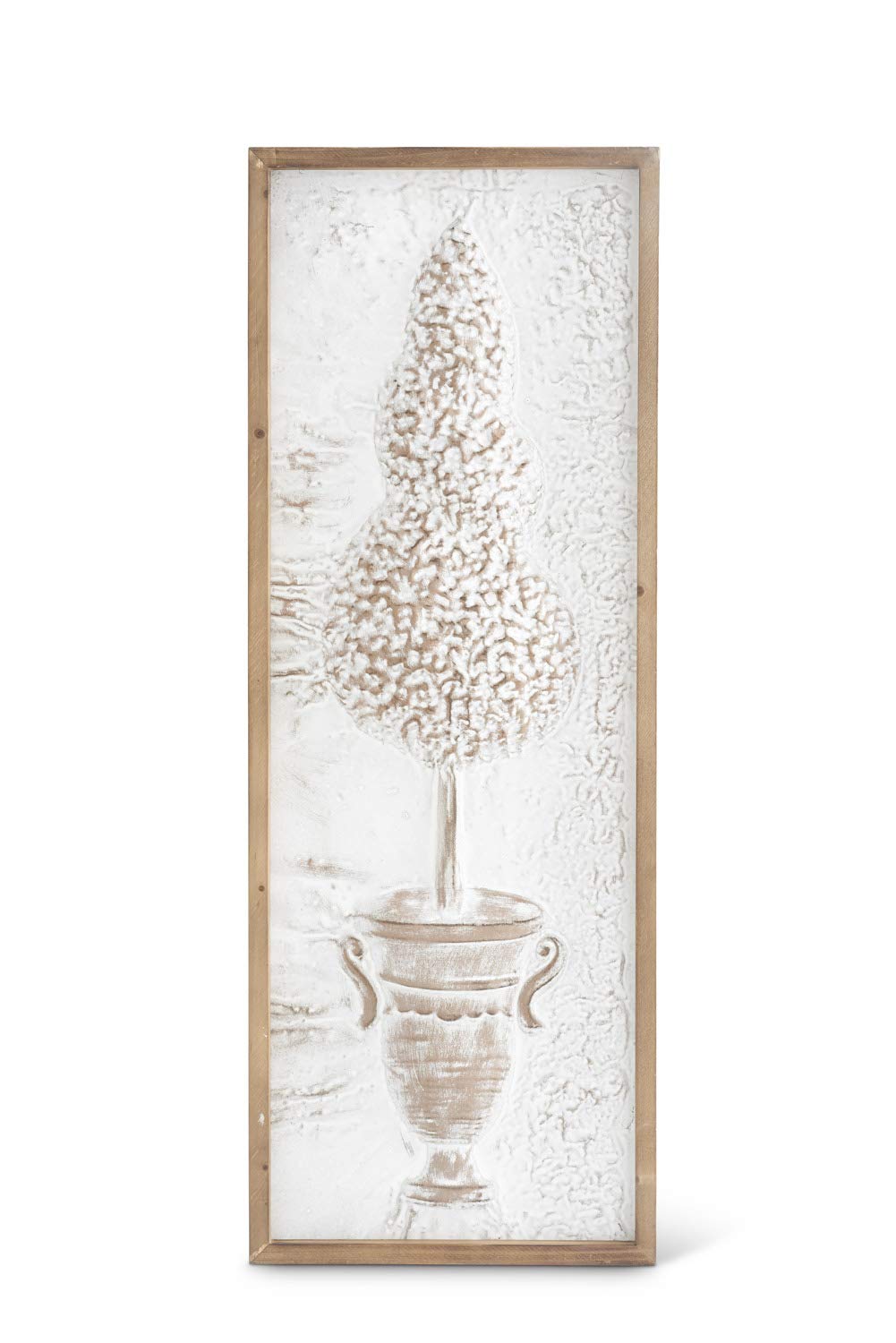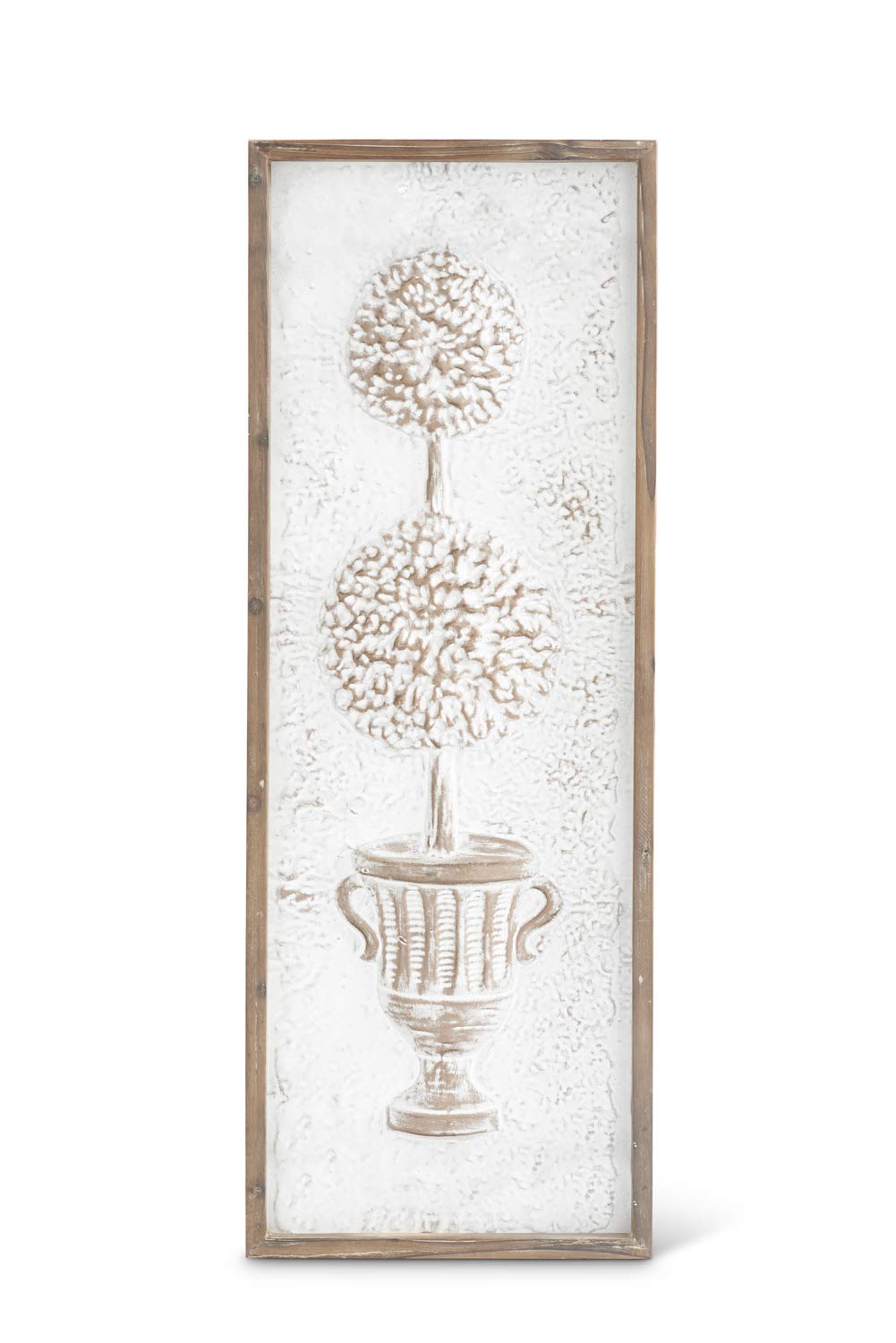 K&K Interiors 16237A-1 36.5 Inch Natural Wood Framed Raised Tin Whitewashed Topiary Wall Décor, White