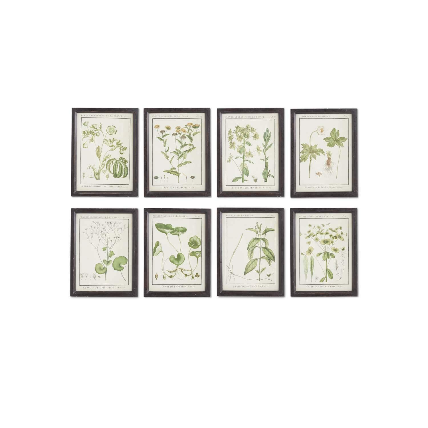 K&K Interiors 15338A Assorted 13.5 Inch Botanical Prints in Wood Frames (8 Styles), Green