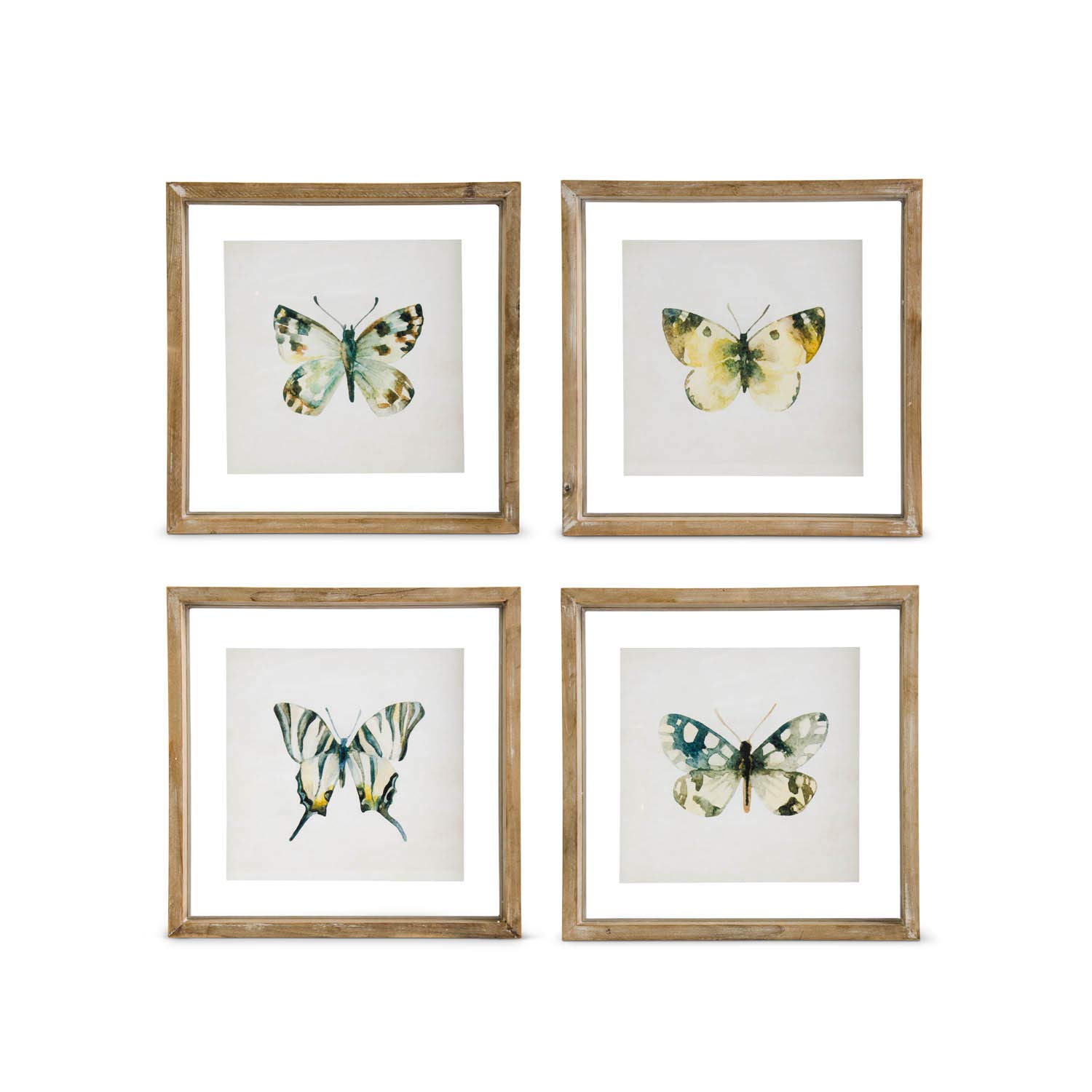 K&K Interiors 16256A Assorted 10 Inch Wood Whitewash Shadowbox Framed Butterfly Print
