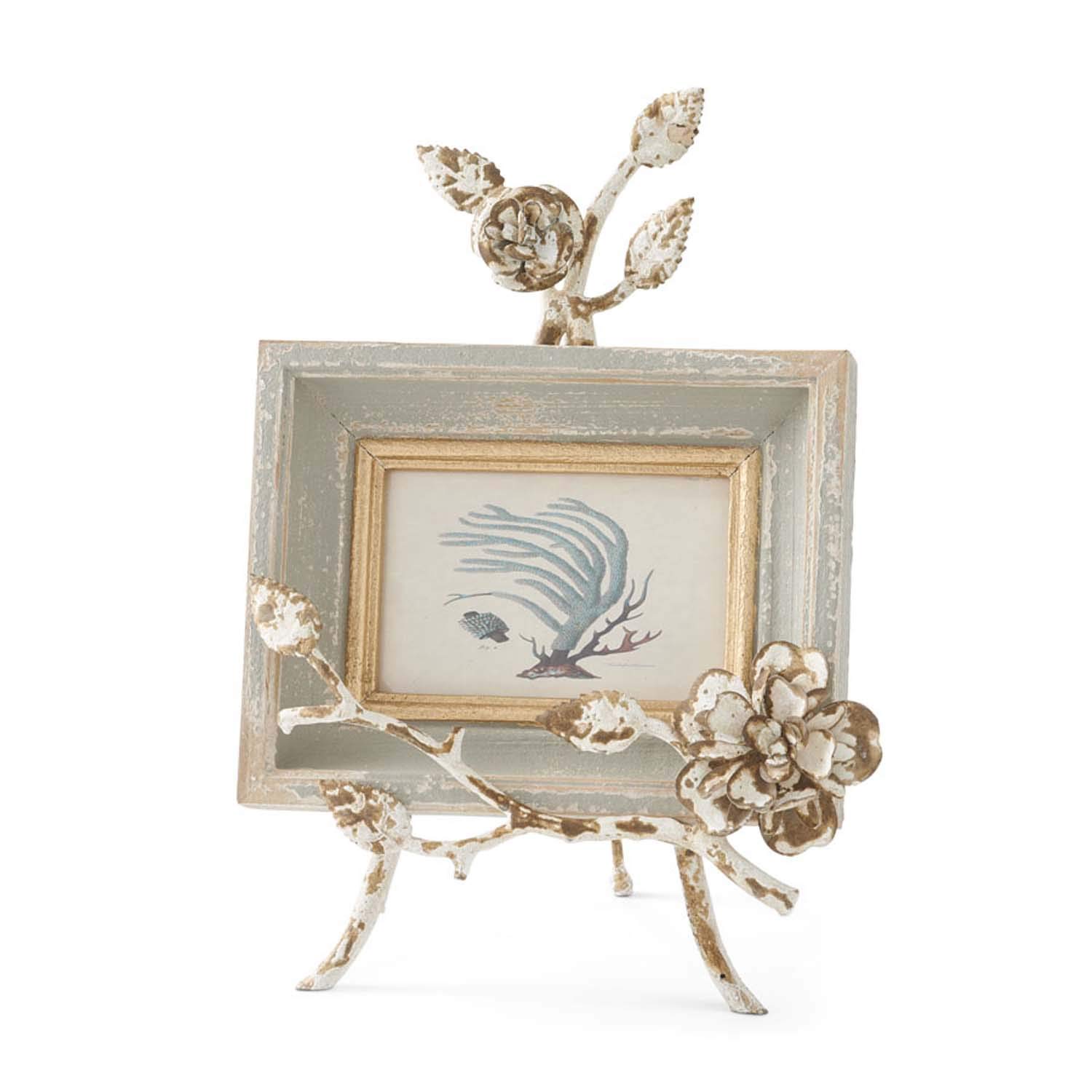 K&K Interiors 15409A 13.75 Inch Ornate Easel with Framed Botanical Print, MDF/FIR/Metal