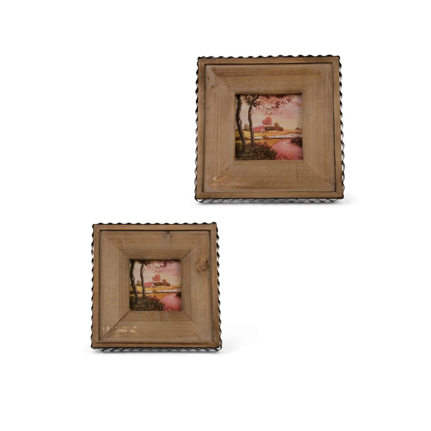 K&K Interiors 14912C Set of 2 Square Photo Frames with Corrugated Metal Trim, Grad Siz, Iron, fir Wood