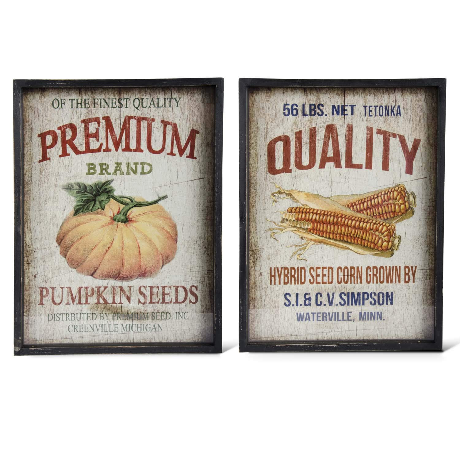 K&K Interiors 41267A 20.25 Inch Distressed Black Framed Harvest Vintage Seed Signs (2 Sty