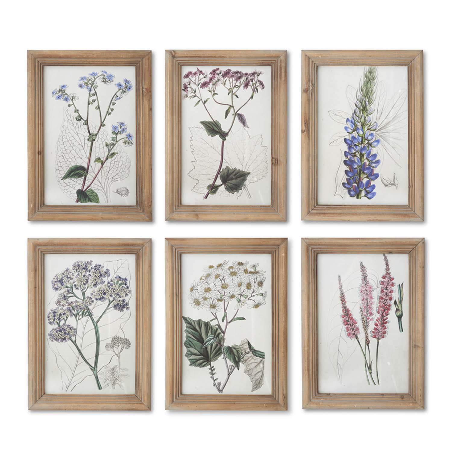K&K Interiors 14423A Assorted Flower Botanical Prints with Natural Frames (6 Styles)
