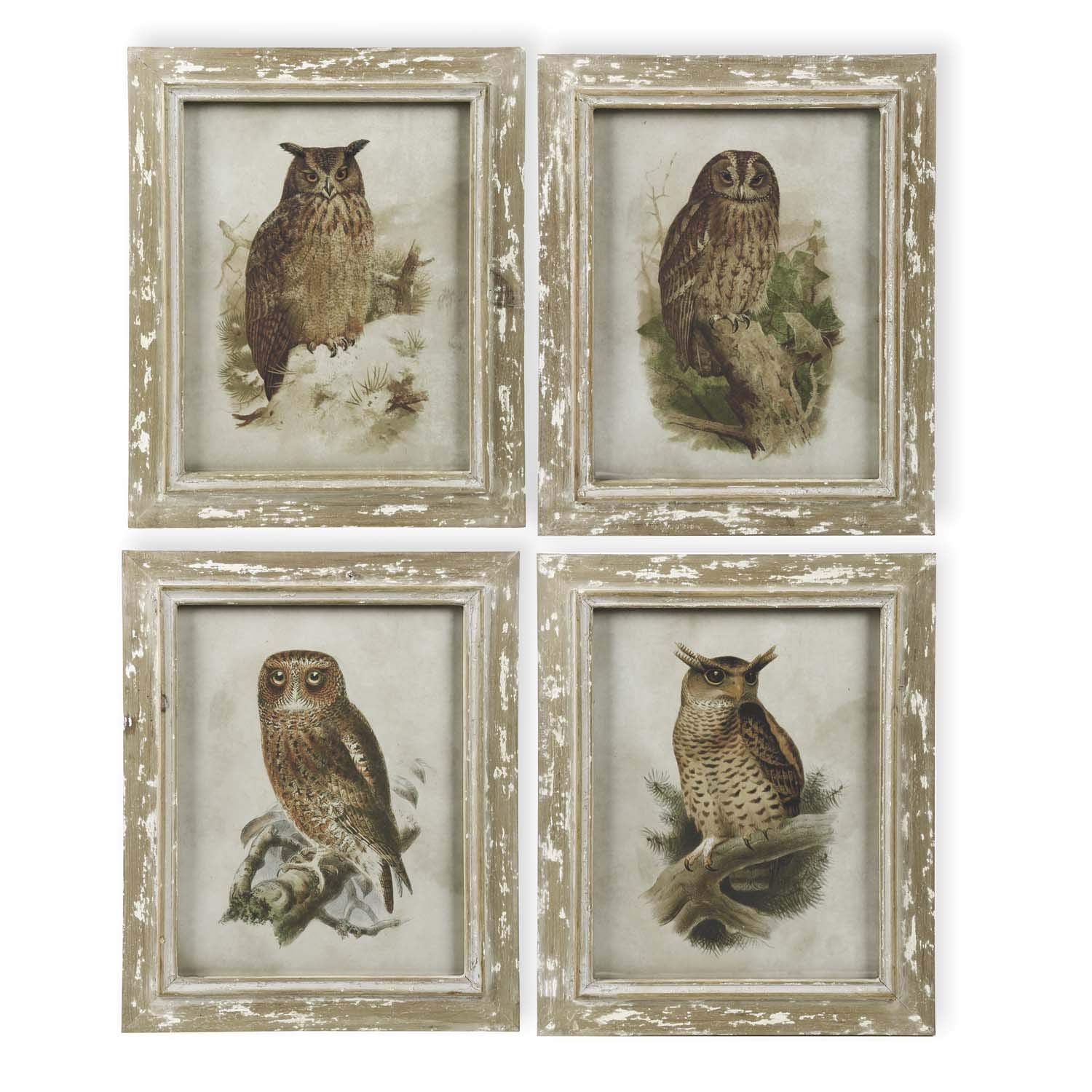 K&K Interiors 40969A 21 Inch Assorted Distressed Wood Framed Owl Pictures (4 Styles)