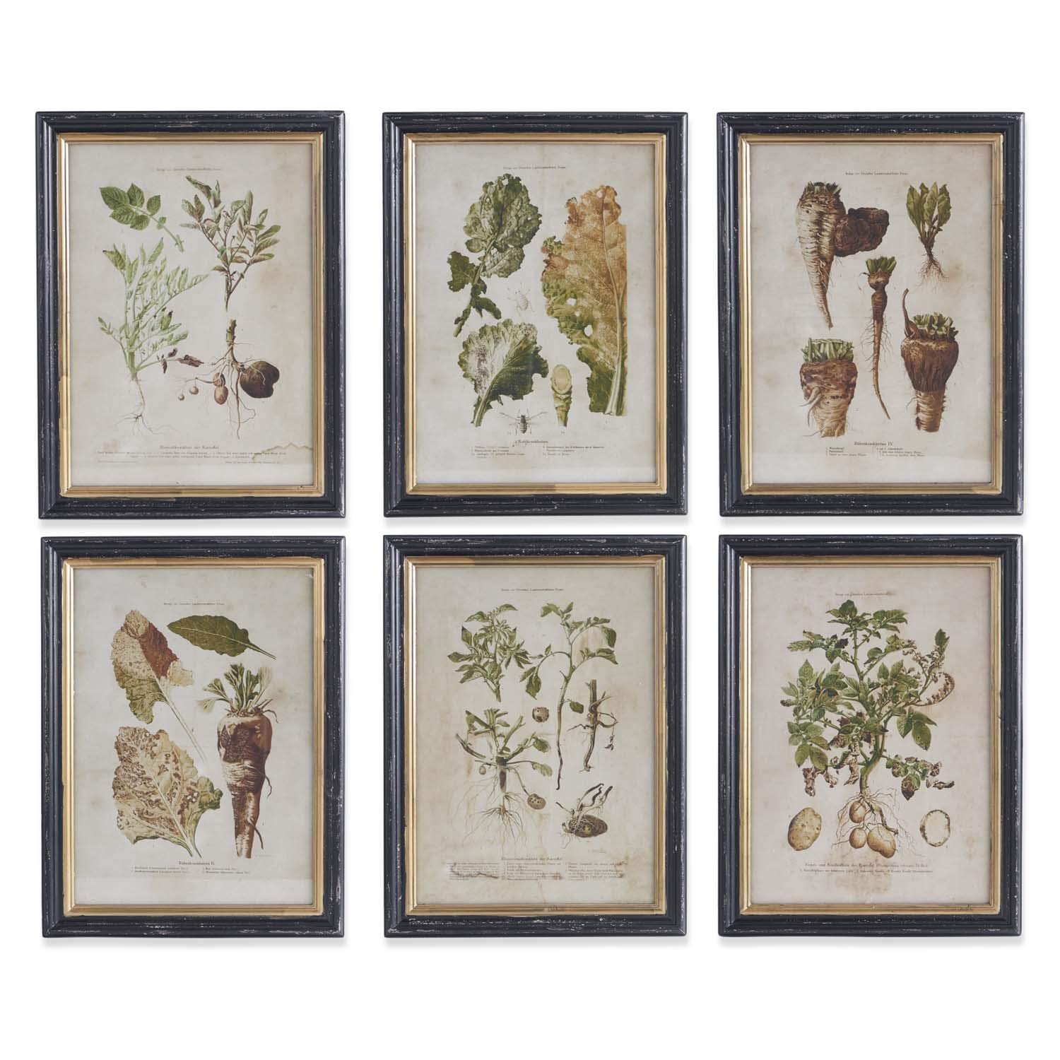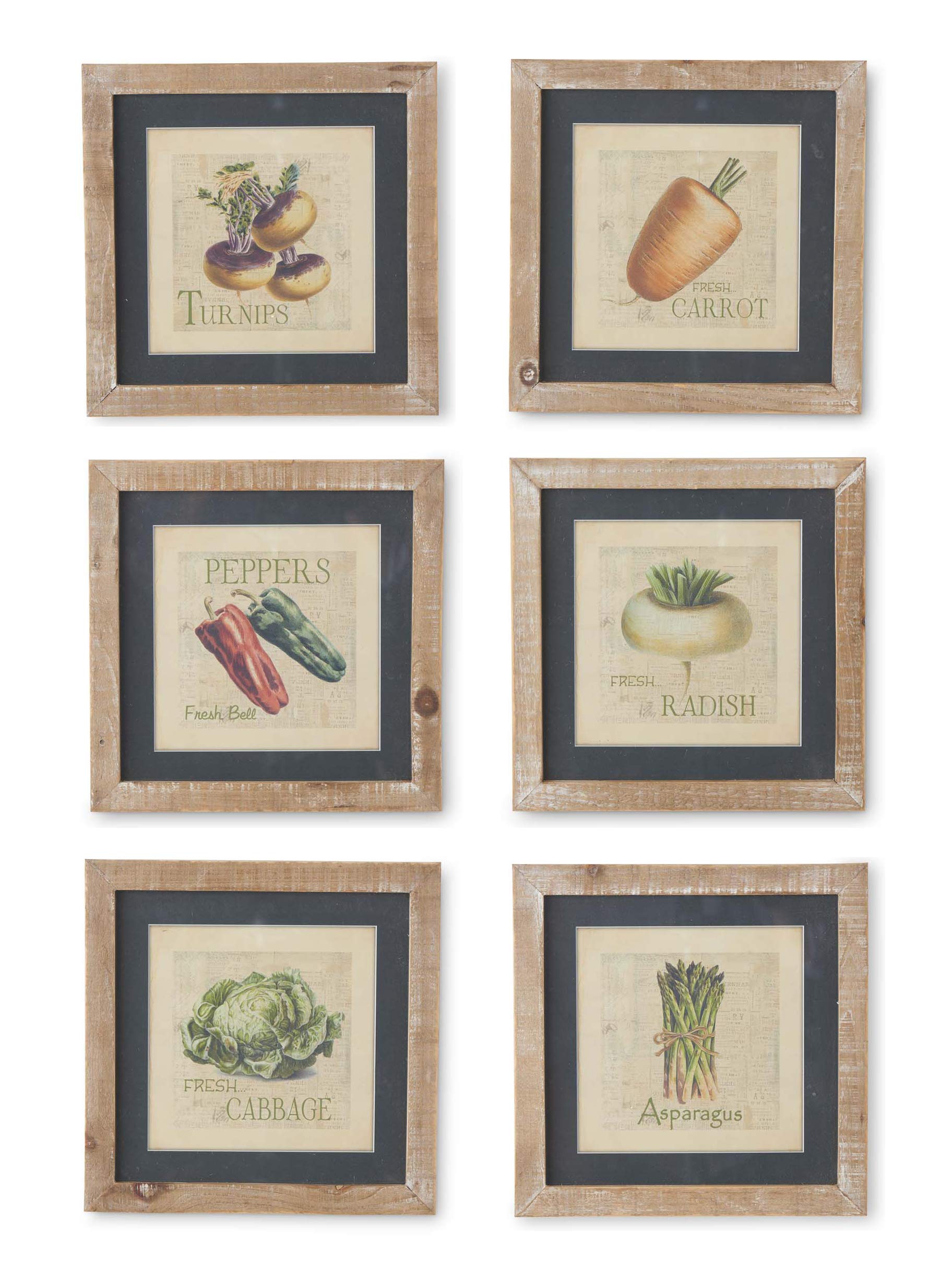 K&K Interiors 14339A Assorted Vegetable Prints Frames (6 Styles), Wood-Fir/Glass