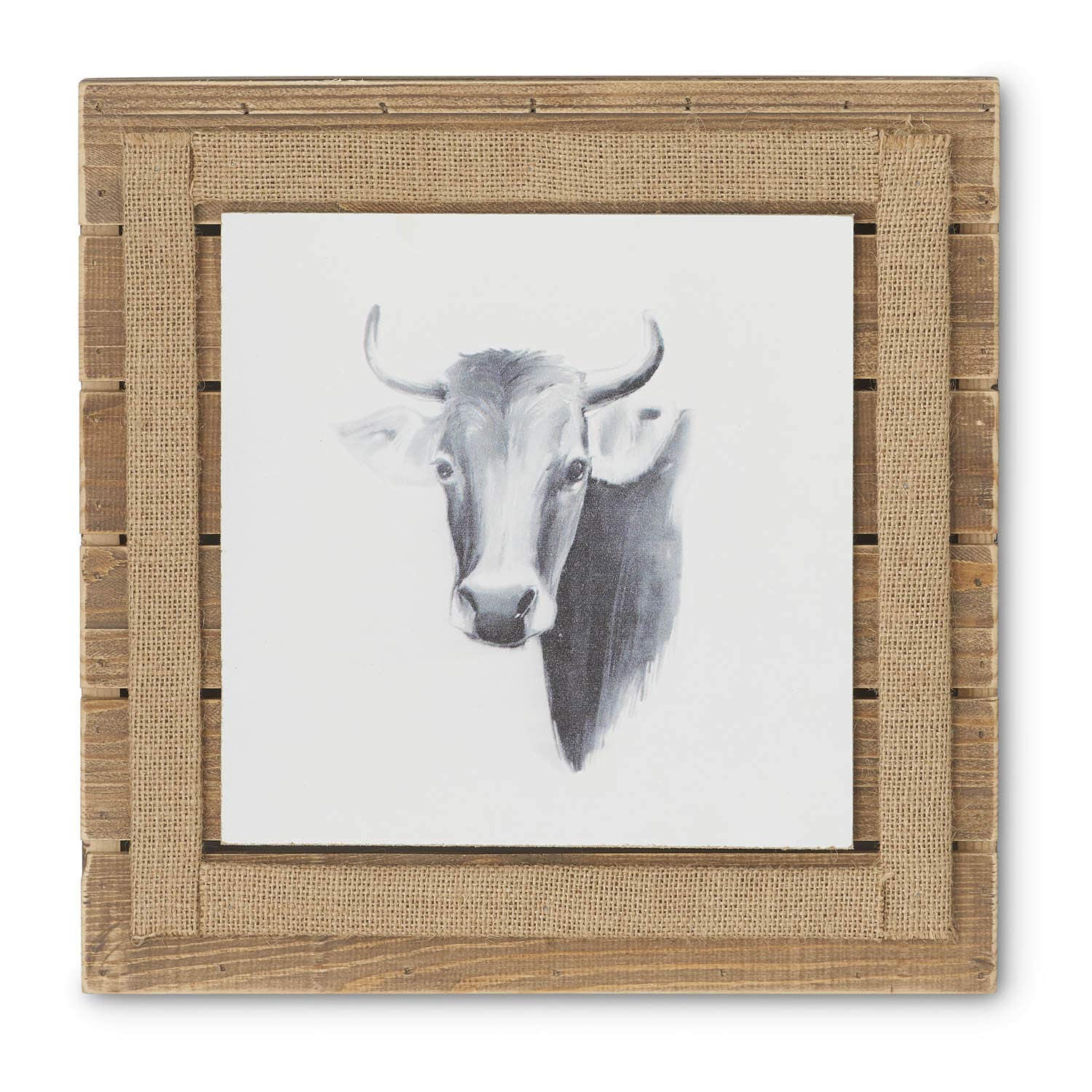 K&K Interiors 16004A-3 12 Inch Wood Framed Farm Animal - Cow, Brown and White