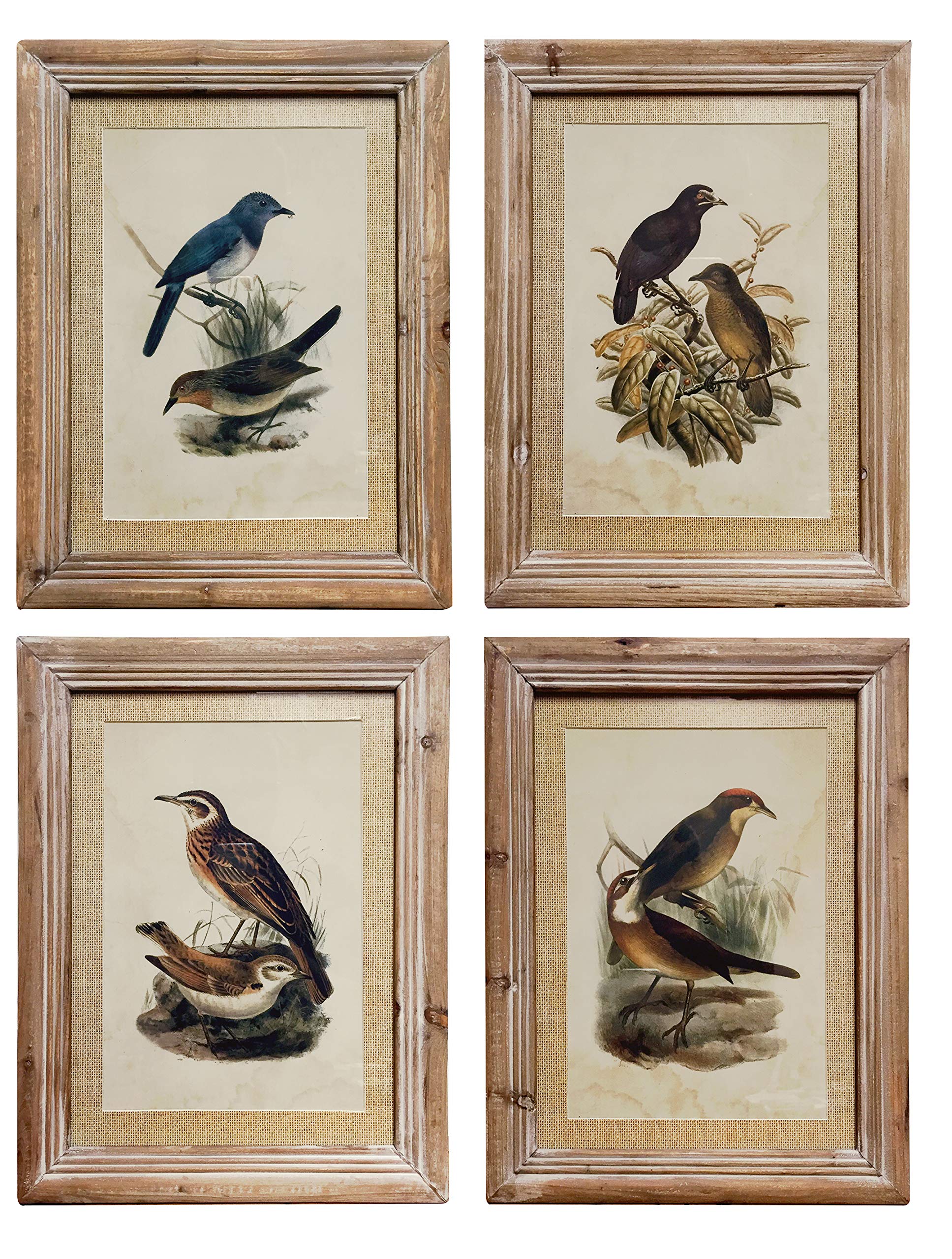 K&K Interiors 14404A Assorted Bird Prints with Natural Frames (6 Styles), Fir Wood/Glass/MDF(fir)