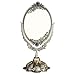 KINGFOM Antique Two Sided Swivel Oval Desktop Vanity Makeup Mirror with Embossed Roses and Mounted Beads for Home, Jewelry or Watches Cosmetics Showcase (Antique Pewter, Standard)