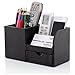 KINGFOM PU Leather Desk Organizer Office Accessories Collection Storage Box, 3 Compartments Pen Pencil Holder with Small Drawer (Black)