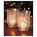 Set of 2 Elegant Frosted Snowflake Winter Jeweled Glass Candle Holders Christmas Table Top Decor