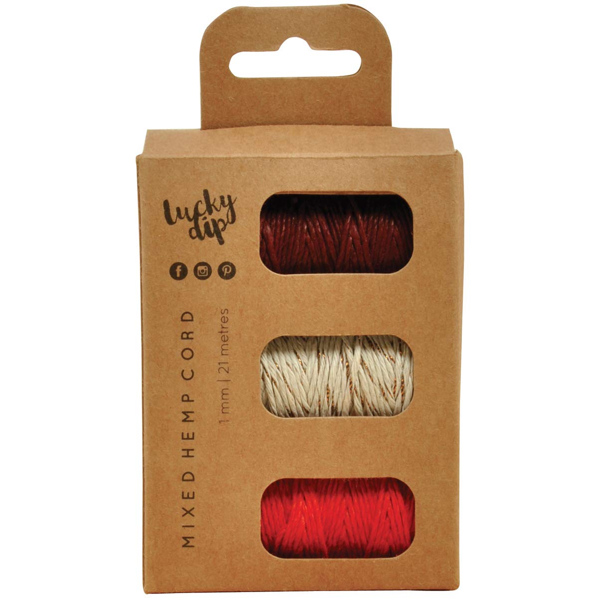 Kaisercraft LDB1066 Lucky Dip Mixed Hemp Cord 1.0mmX21m 3/Pkg-Cherry