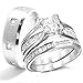 KingswayJewelry His & Her 3-Piece Women Sterling Silver & Men Stainless Steel Engagement Rings Set