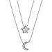 Kooljewelry Sterling Silver Cubic Zirconia Star and Crescent Charm Layered Necklace (16 inch)