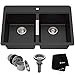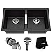 Kraus KGU-434B 33 inch Undermount 50/50 Double Bowl Black Onyx Granite Kitchen Sink
