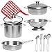 Liberty Imports Stainless Steel Metal Pots and Pans Kitchen Cookware Playset for Kids with Cooking Utensils Set