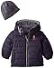 London Fog Baby Chest Stripe Puffer Coat with Hat, Navy, 24 Months