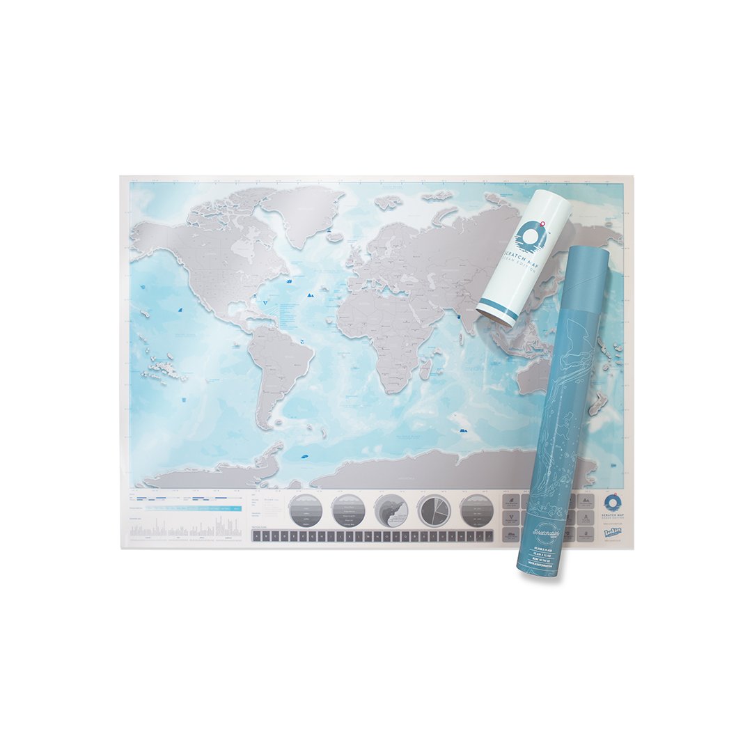 Large World Ocean Scratch Map – Personalized World Ocean Travel Map – Scratch Off Map – Transparent & Colorful Scratch Poster – Great for Classrooms & Travelers – Blue & Grey