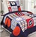 MK Home Collection Bedspread Set Boys Sport Football Basketball Baseball Dark Blue (Twin)