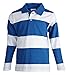 Madison Boys 100% Cotton Long Sleeve Wide Striped Polo Shirt - Royal/White (Size 10)