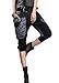 Minibee Women's Harem Patchwork Leather Pocket Punk Style Personalized Pants Black