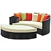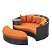 Modway Taiji Outdoor Wicker Patio Daybed with Ottoman in Espresso with Orange Cushions