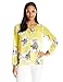 NY Collection Women's Printed Long-Sleeve Blouse with High-Low Hem, Yellow Magnolia, Large