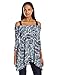 NY Collection Women's Cold Shoulder Shark-bite Printed Top, Aqua Zen Garden, Medium