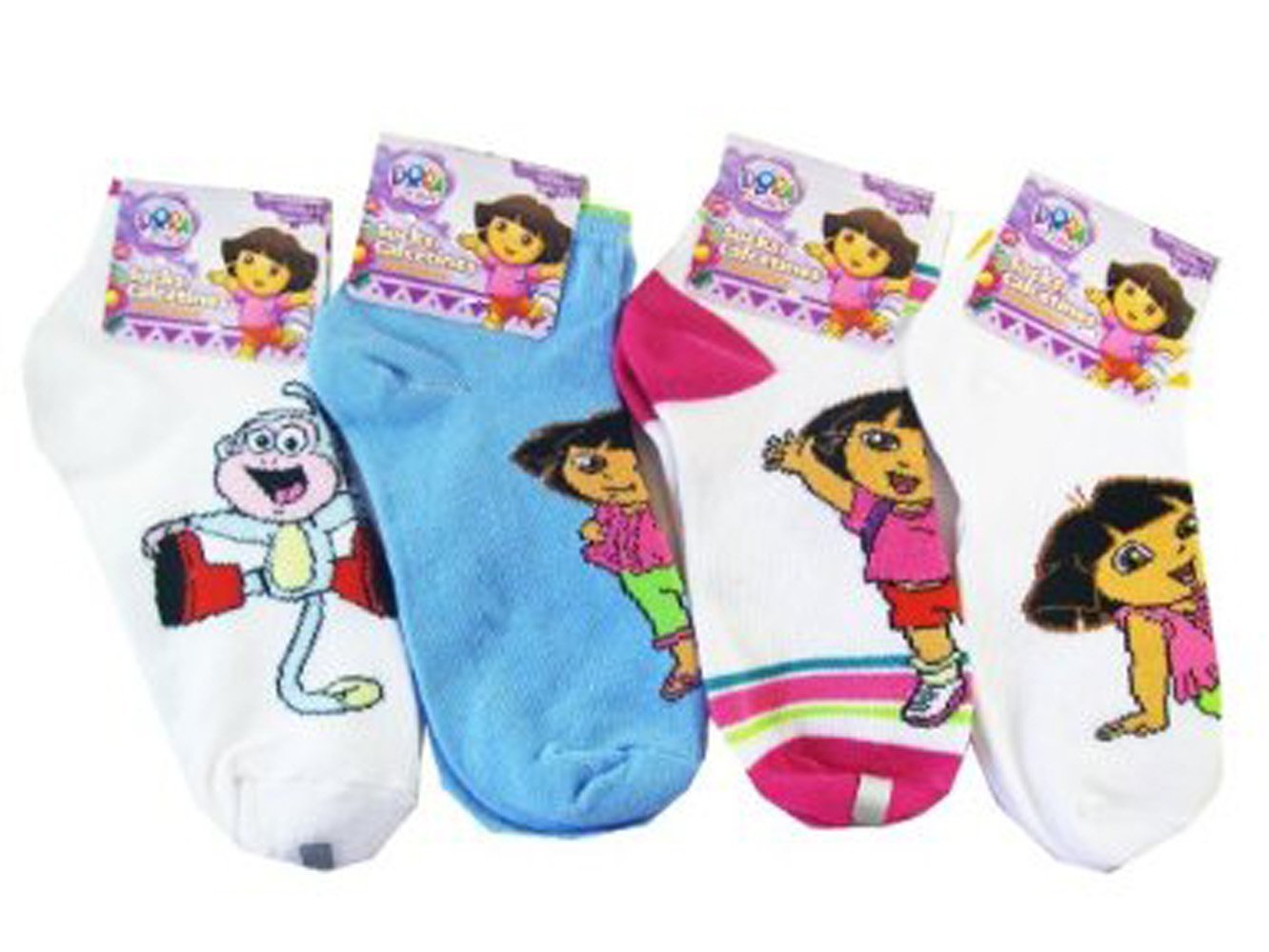 Dora the Explorer 3pc Girls Ankle Socks (Shoe Size 10.5 - 4) - Dora Socks (3 Pairs)