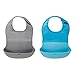 OXO Tot Waterproof Silicone Roll Up Bib with Comfort-Fit Fabric Neck, 2 Pack, Green/Aqua