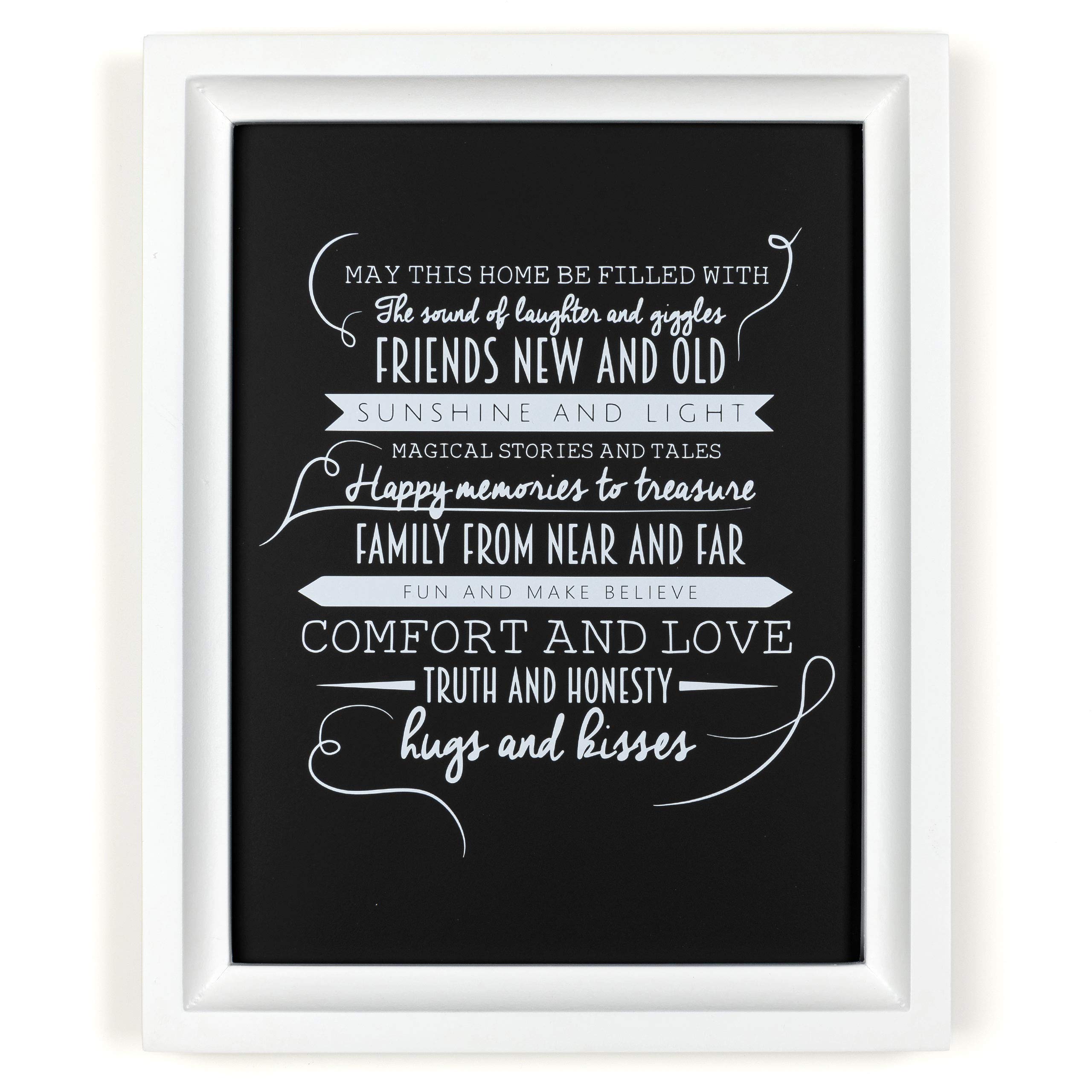 Ocean Drop Designs - 'May This Home' Quote Chalkboard Style Typography Wall Art - Print and White Frame - Perfect Housewarming Gift (8"X10")