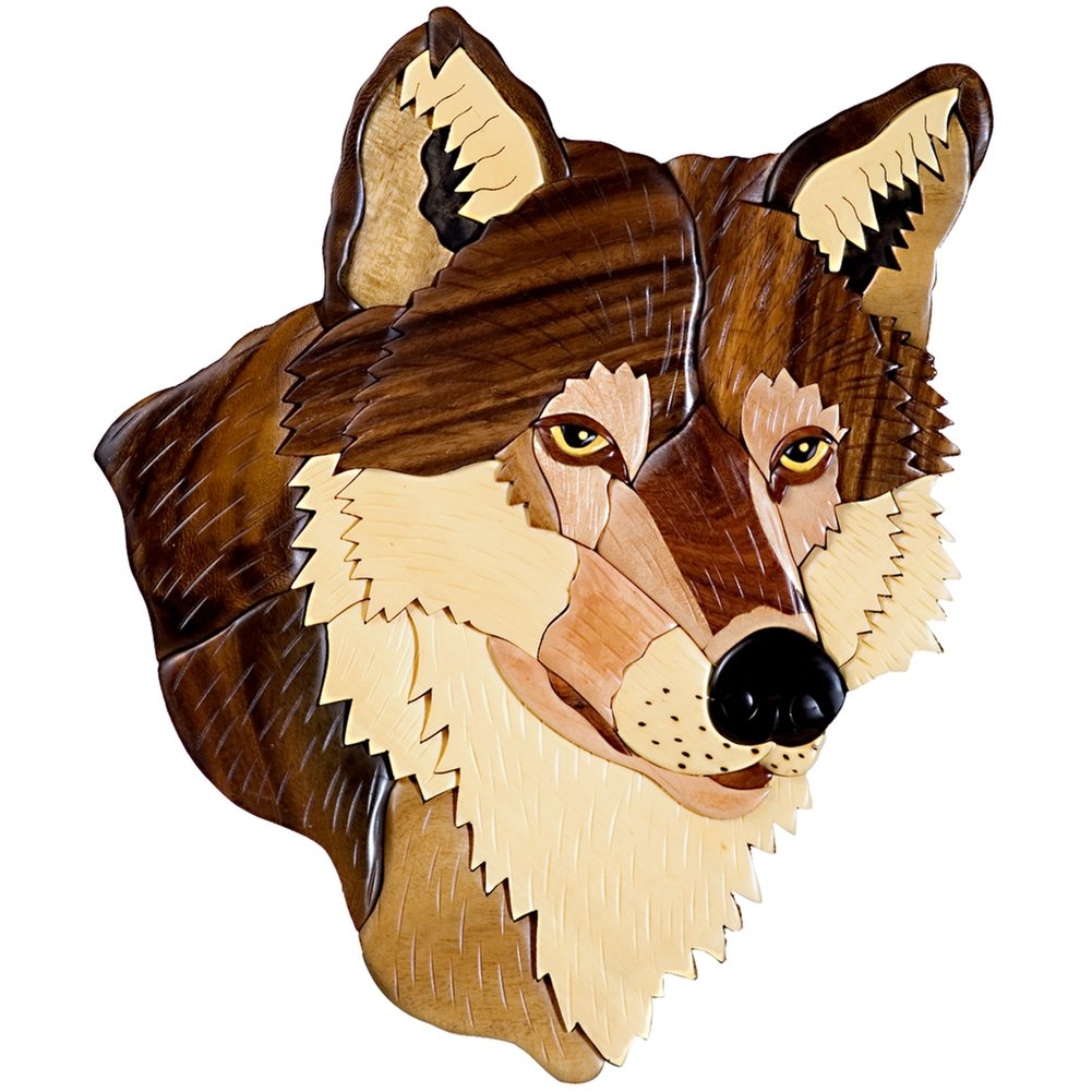 Wolf Head II Wooden Wall Hanging