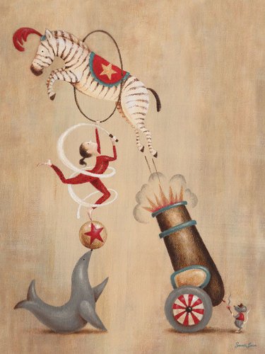 Oopsy daisy, Fine Art for Kids Vintage Circus Cannon Stretched Canvas Art by Sarah Lowe, 10 by 14-Inch