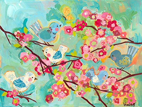 Oopsy Daisy Cherry Blossom Birdies Stretched Canvas Wall Art, 24" X 18"