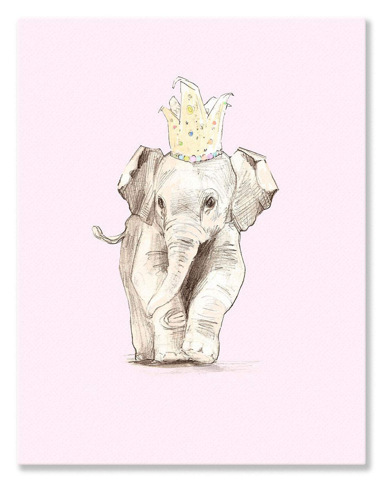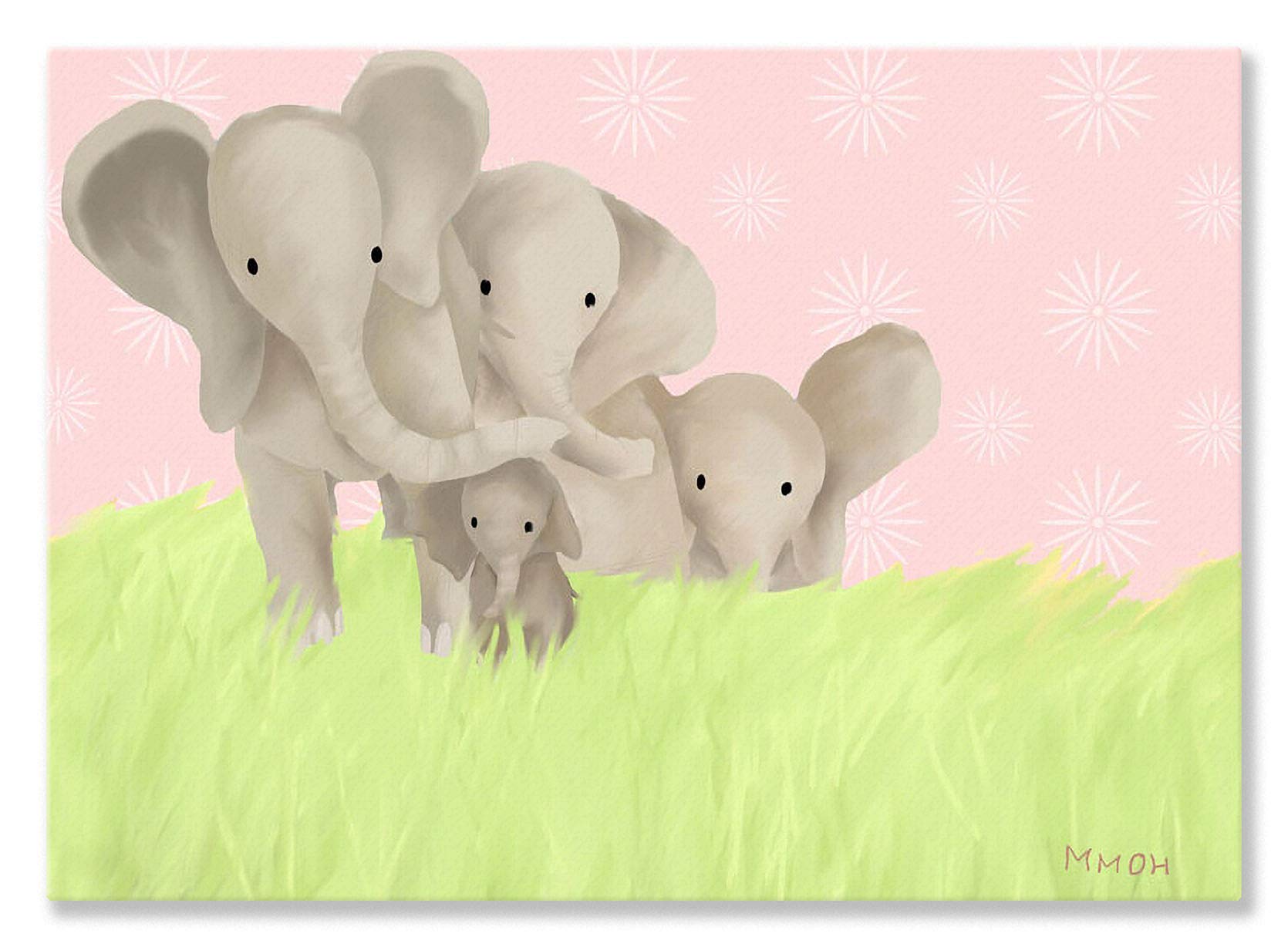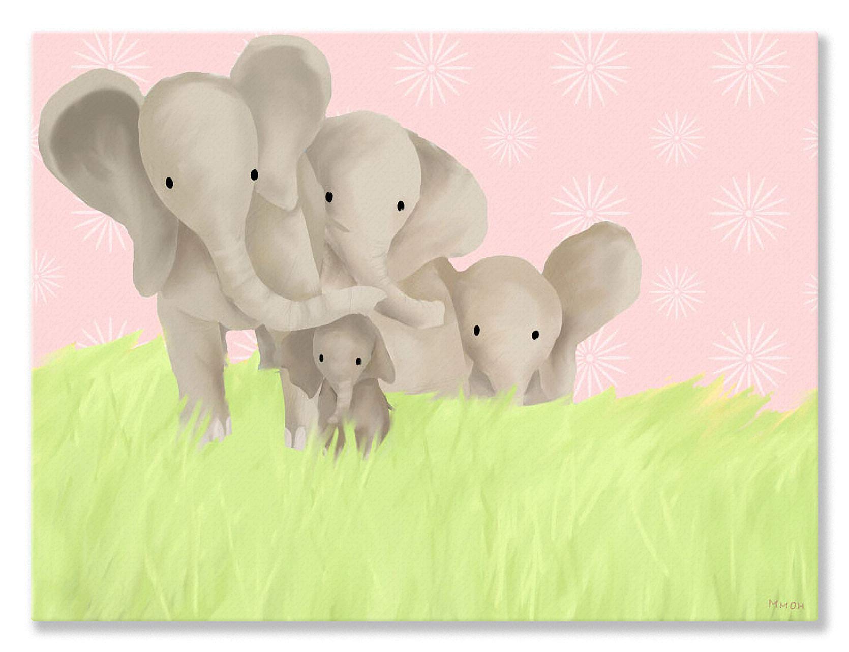Oopsy Daisy Stand by Me Elephants Powder Pink Stretched Canvas Wall Art by Meghann O'Hara, 10 by 14-Inch