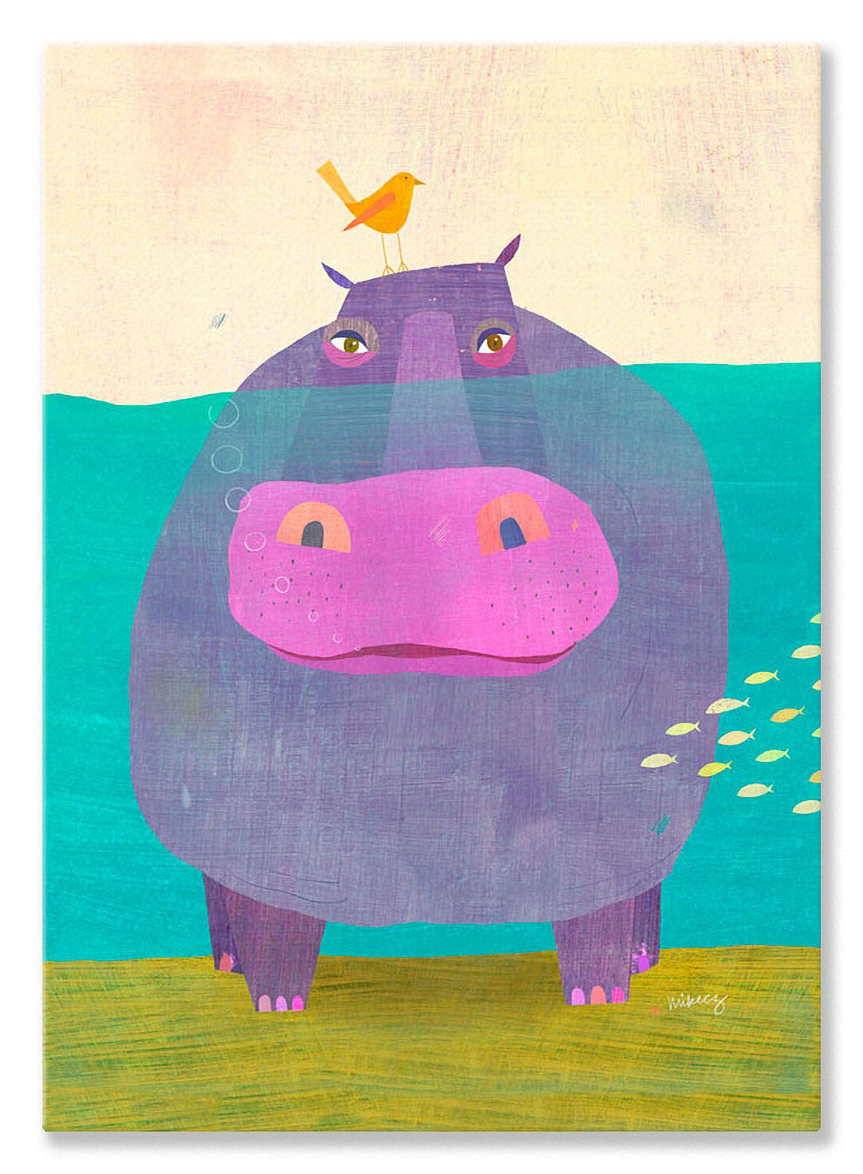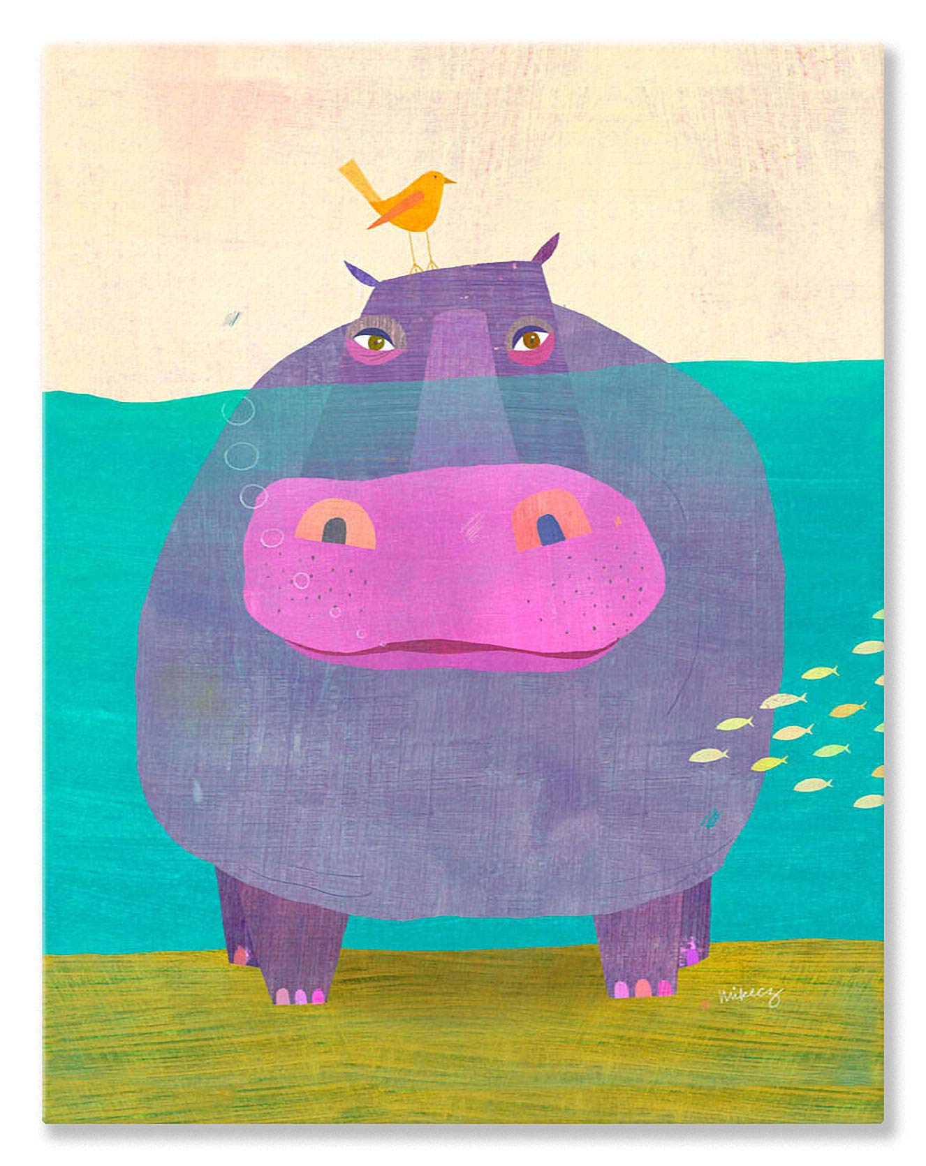 Oopsy daisy Happy Hippo Canvas Wall Art, 10x14, Purple