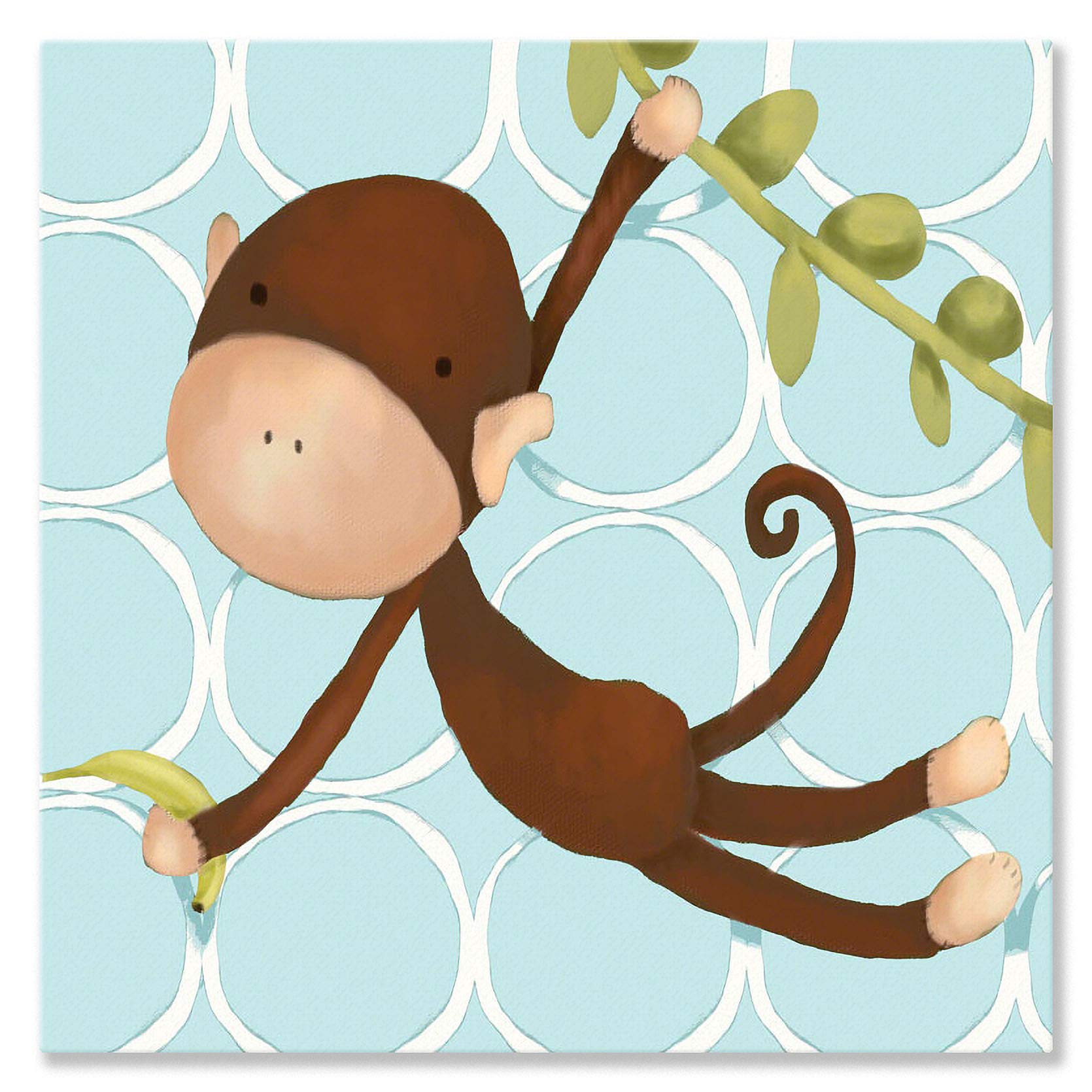 Oopsy Daisy Hanging Monkey Blue by Meghann O'Hara Canvas Wall Art, 10 by 10-Inch