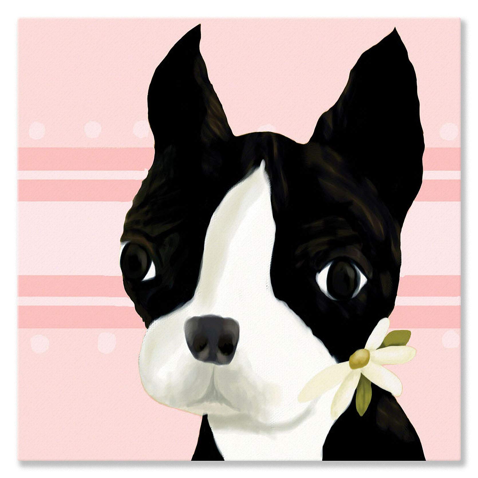Oopsy daisy bea The Boston Terrier Powder Pink Stretched Canvas Wall Art by Meghann O'Hara, 21 by 21-inch