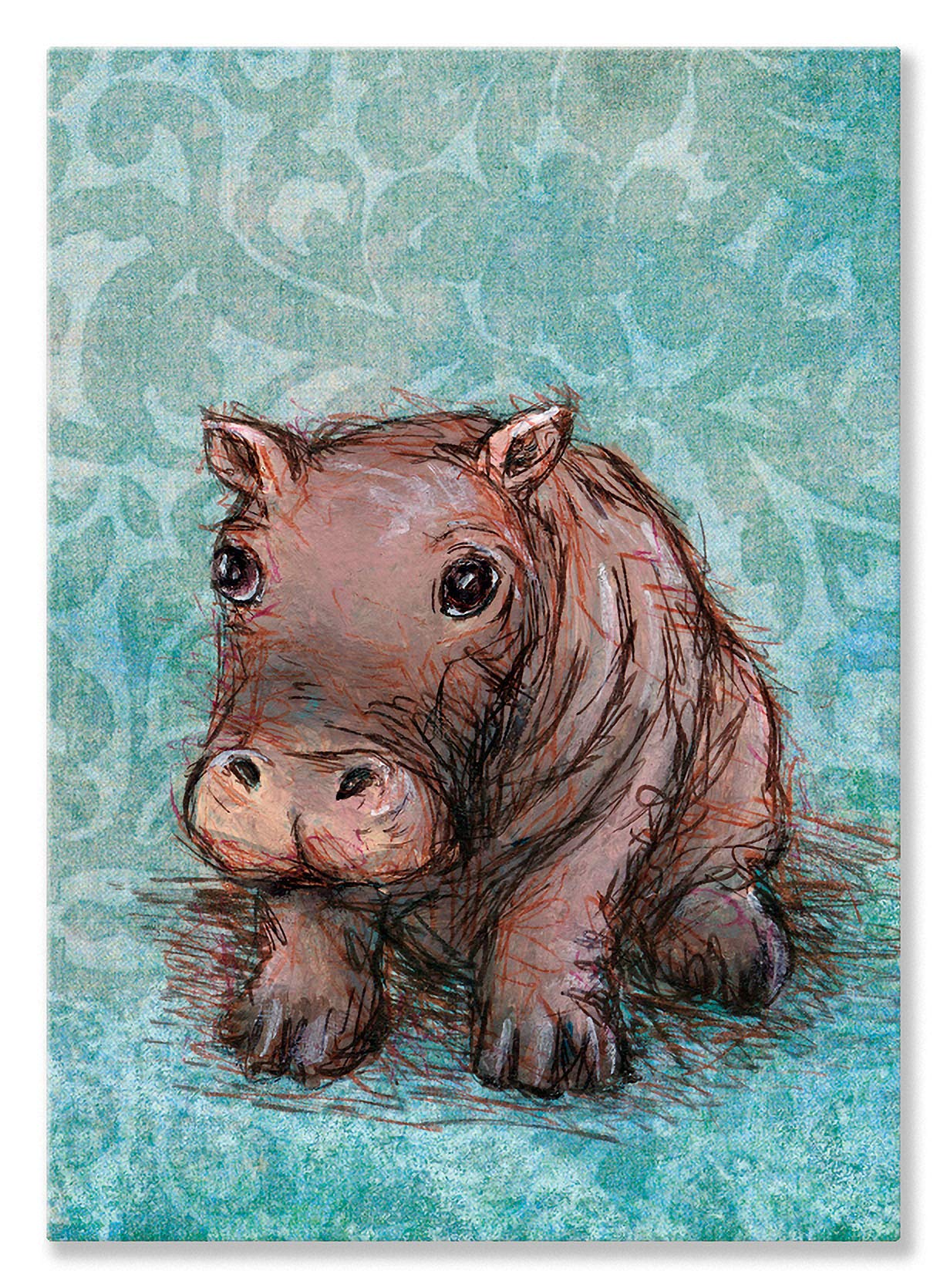 Oopsy daisy, Fine Art for Kids Safari Kisses Hippos Stretched Canvas Art by Sarah Lowe, 10 by 14-Inch