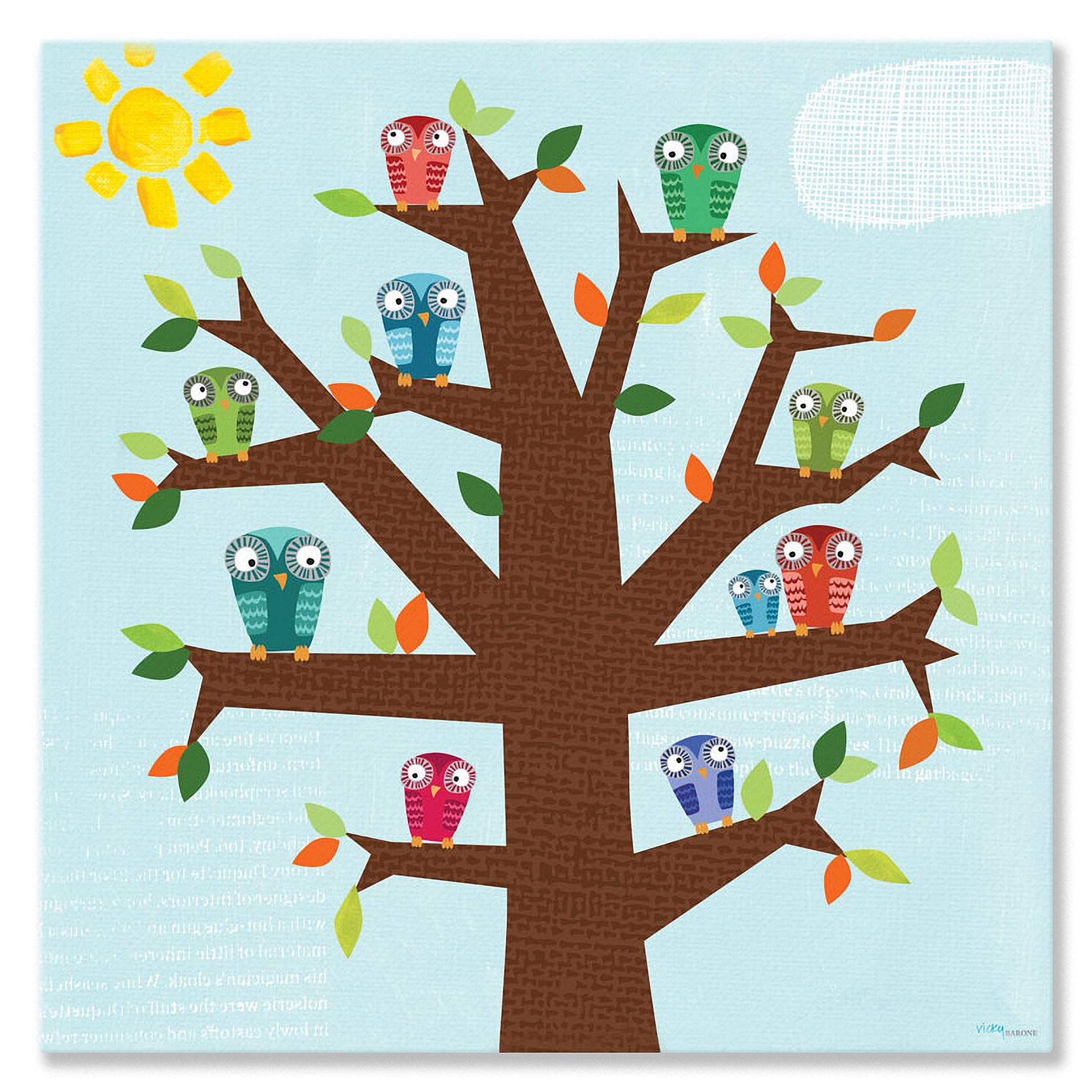 Oopsy Daisy Fine Art for Kids Owl Family Canvas Wall Art by Vicky Barone, 14 x 14"