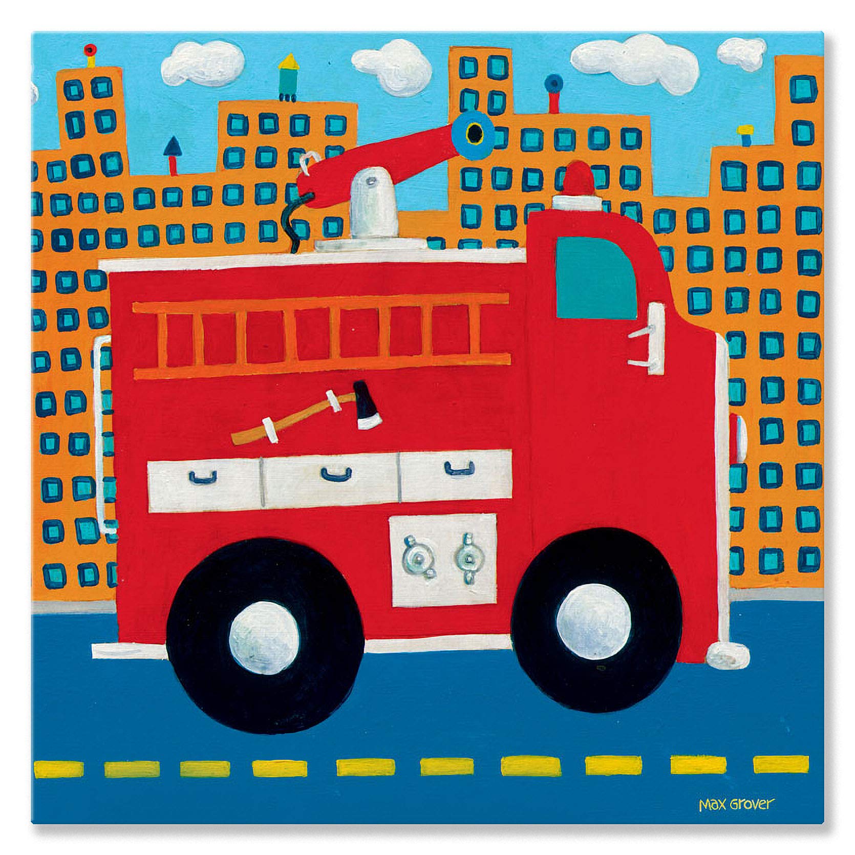 Oopsy daisy fire Truck Stretched Canvas Wall Art by max Grover, 10 by 10-inch