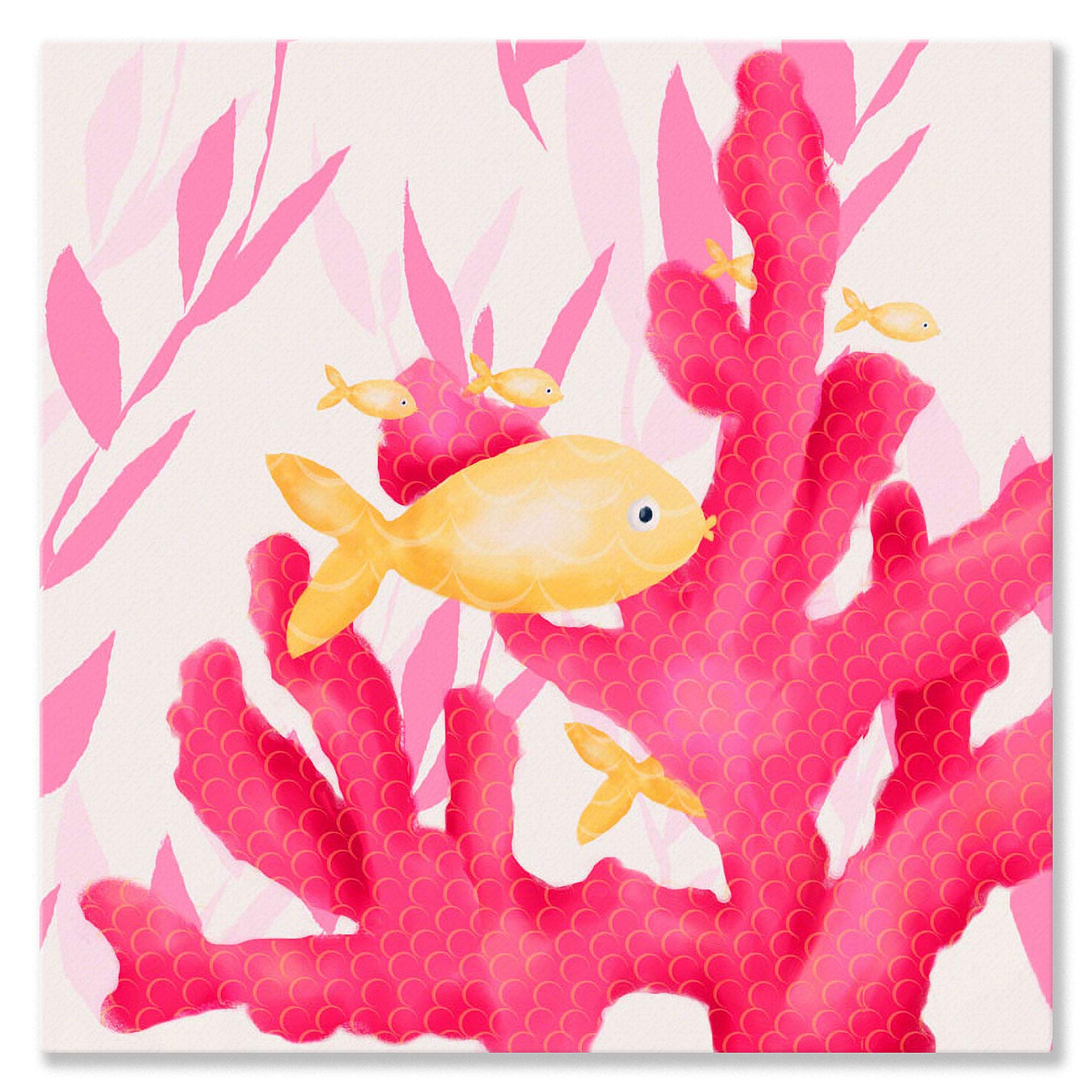 Oopsy daisy Pink Coral and Little Fish Stretched Canvas Wall Art by Meghann O'Hara, 10 by 10-Inch