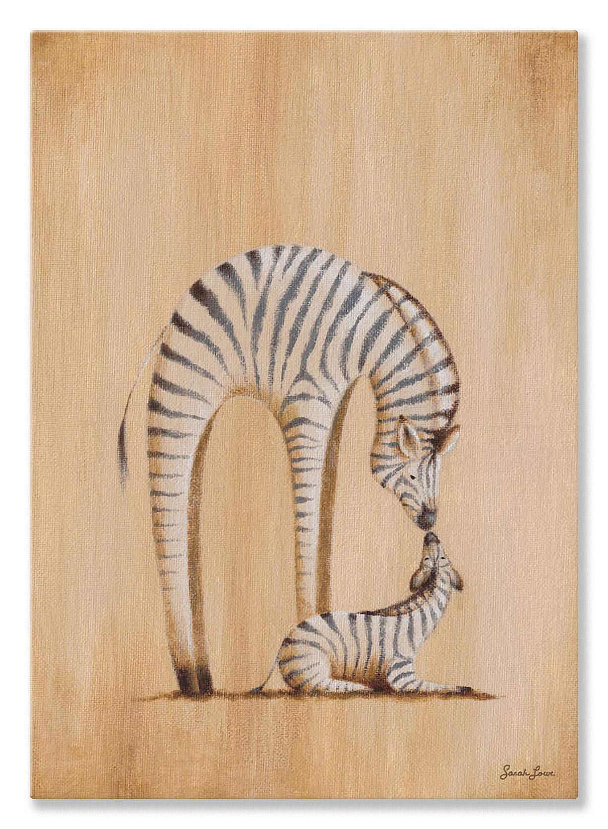 Oopsy daisy, Fine Art for Kids Safari Kisses Zebra Stretched Canvas Art by Sarah Lowe, 10 by 14-Inch