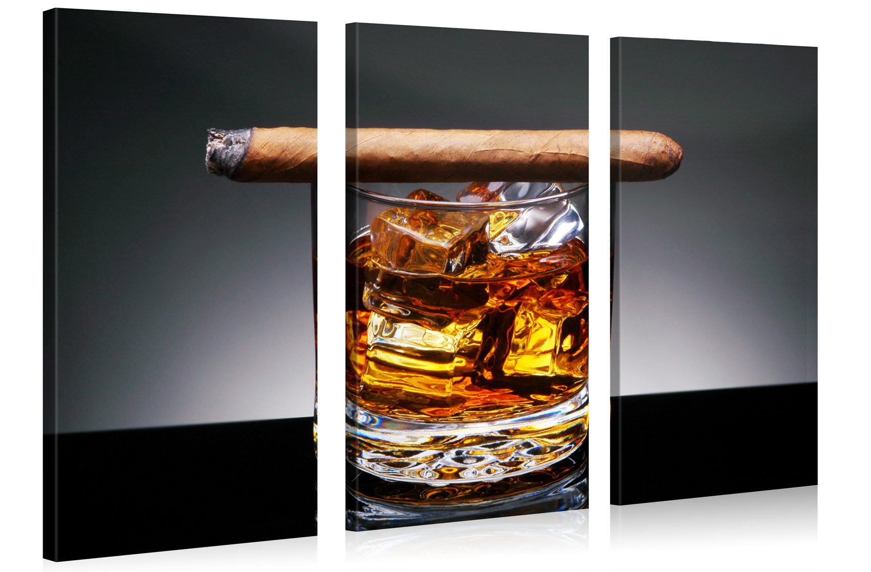 Large Canvas Print Wall Art – WHISKEY LOUNGE – 48x30 in (3 pcs) Still Life Canvas Picture Stretched On A Wooden Frame – Giclee Canvas Printing – Hanging Wall Deco Picture / e3399